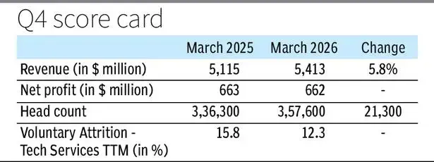 कंपनी का कुल हेडकाउंट 3,57,600 तक पहुंच गया है, जो पिछले साल के मुकाबले 21,300 की बढ़त दर्शाता है।