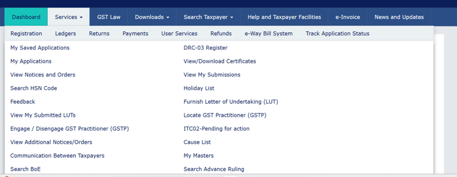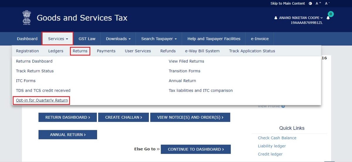 - डैशबोर्ड पर Services → Returns → Return Dashboard पर क्लिक करें।