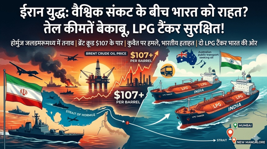 ईरान‑अमेरिका‑इज़राइल युद्ध के बीच भारत के लिए राहत की खबर: दो भारतीय LPG टैंकर Strait of Hormuz पार कर सुरक्षित भारत की ओर बढ़ रहे हैं। जानें ईरान की धमकियां, रूस की भूमिका और वैश्विक तेल संकट पर असर।